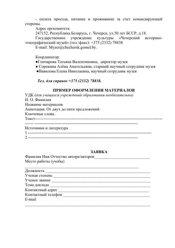 Чечерский историко-этнографический музей приглашает принять участие в ежегодной конференции "Живи,Чечерская земля!"